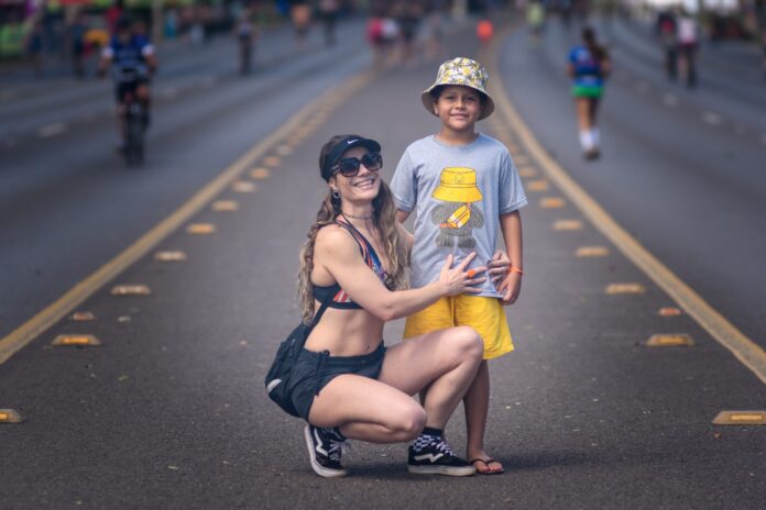 Priscila Simões, 32, enfermeira e orientadora de práticas de enfermagem, pedalou de bicicleta com a filha Clara Simões Lopes, 10 anos. Para Priscila, ser mãe é um desafio diário de educar e aprender junto com os filhos. “A gente não nasce sabendo como ser mãe. A gente vai aprendendo com o tempo. O maior desafio é não perder a essência da criança, principalmente com as redes sociais”, assinalou.