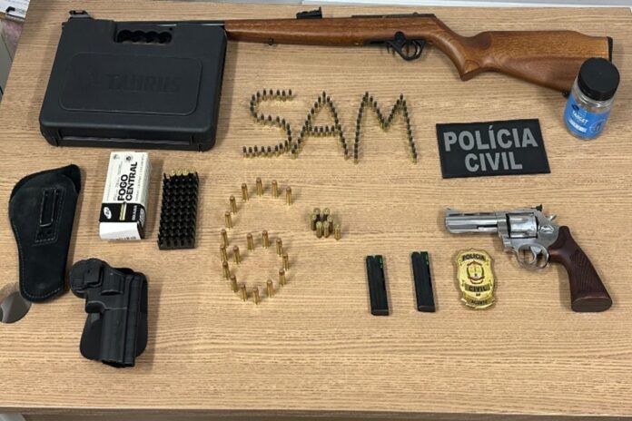 A prisão foi deflagrada durante mandado de busca e apreensão cumprido na residência do suspeito. Na ocasião, os policiais da 6ª Delegacia de Polícia (Paranoá), encontraram duas armas de fogo: um rifle e um revólver.