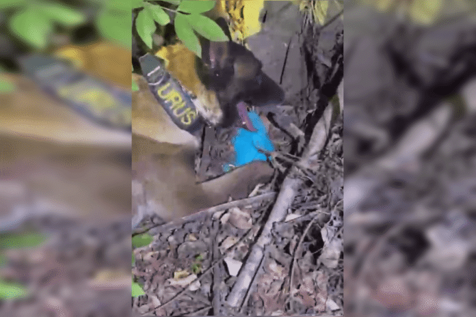 O animal encontrou porções de crack enterradas em uma área de mata, além de uma balança de precisão e mais de R$ 8 mil em dinheiro.