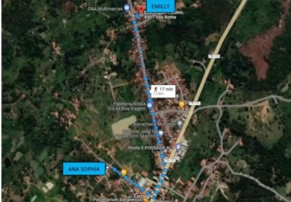 Trajeto feito por Ana Sophia no dia do desaparecimento