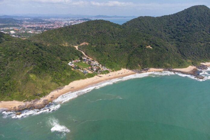 De cima, uma orla com areia dourada e fofa, e com o vai e vem de um mar levemente agitado. A Praia Vermelha, em Penha (SC), é acessível por uma estrada que leva à paisagem preservada. O local é estreante na Bandeira Azul, certificação internacional que atesta qualidade ambiental para praias e marinas.