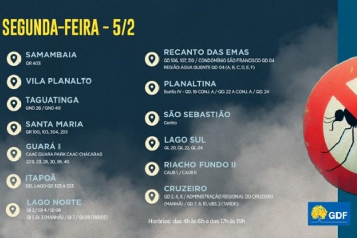 O Governo do Distrito Federal (GDF) divulgou as rotas do carro da fumacê para frear o avanço do mosquito Aedes aegypti, transmissor da dengue, nesta segunda-feira (5/2).