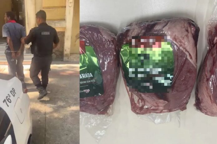 O funcionário de um supermercado no Ingá, em Niterói (RJ), foi preso em flagrante por acusações de furto na tarde desse sábado (15/2). O homem, de 33 anos, teria tentado levar três peças de carne do estabelecimento. Inicialmente, a Polícia Militar foi acionada para uma ocorrência de porte de drogas. Foi só após os PMs chegarem ao local que o furto foi descoberto.