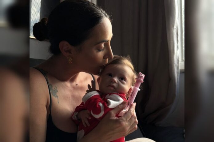 Aurora começou sessões de fisioterapia e fonoaudiologia já nas primeiras semanas de vida. “A ideia é oferecer todos os estímulos que ajudem a alcançar o potencial dela. É possível e estamos buscando isso todos os dias”, afirma Francielli.