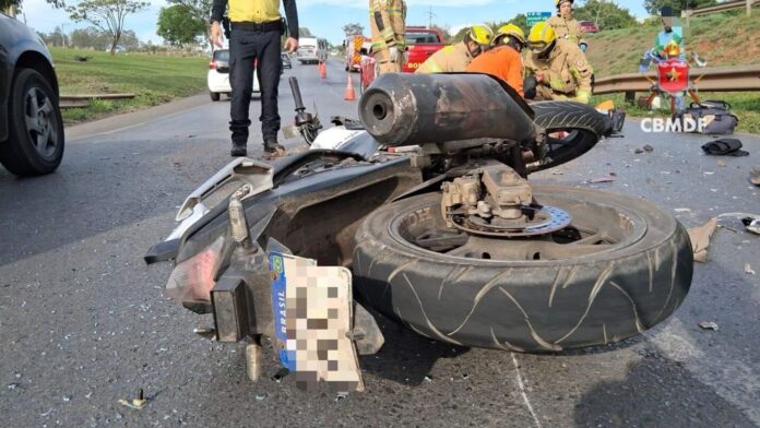 Segundo o Corpo de Bombeiros Militar do Distrito Federal (CBMDF), a vítima dirigia uma Honda CB 250F Twister branca quando colidiu em um Fiat Palio Fire vermelho.