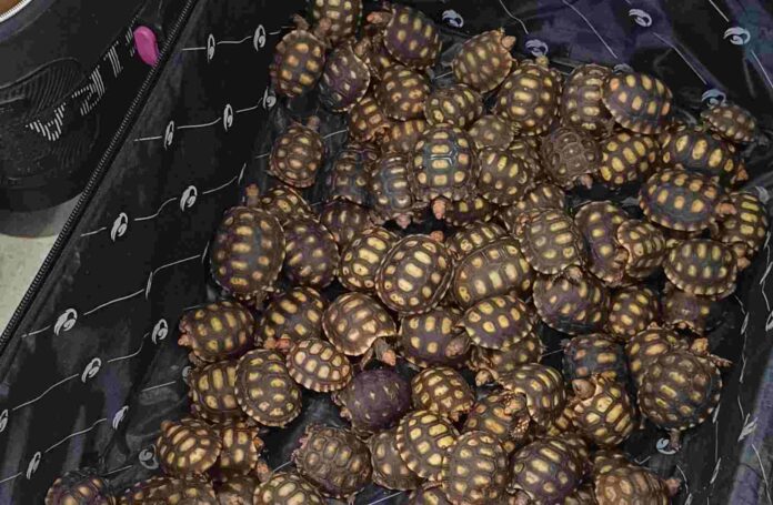 Devido às péssimas condições em que eram levados, alguns dos filhotes morreram durante o trajeto. Segundo a PRF, os animais são filhotes de jabutis piranga.