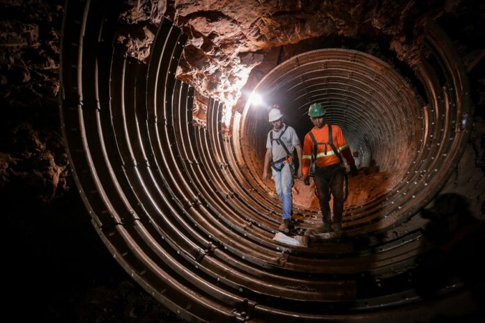 Na reta final da escavação do túnel de drenagem, os operários precisaram vencer um desafio, pois o terreno era extremamente rígido, exigindo trabalho redobrado e ainda mais atenção com a segurança.