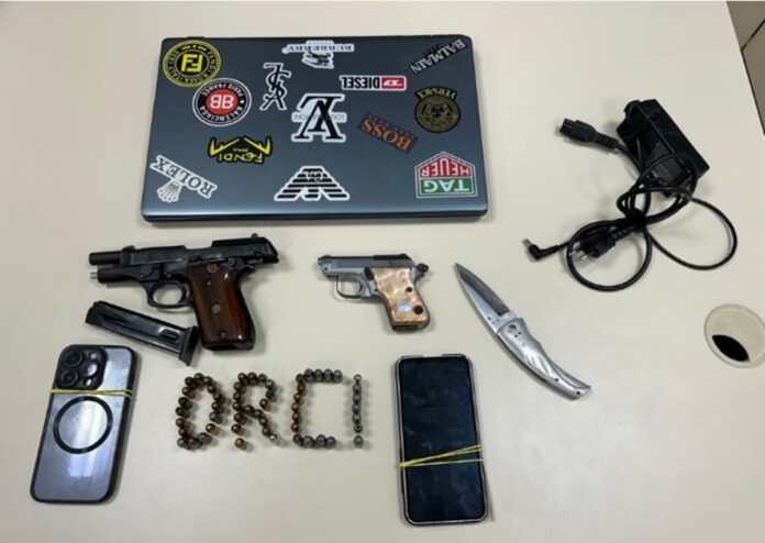 Dentre o material apreendido, estavam duas pistolas (uma delas com numeração raspada), munições e uma faca, além de dois celulares e um notebook, alvos do mandado.